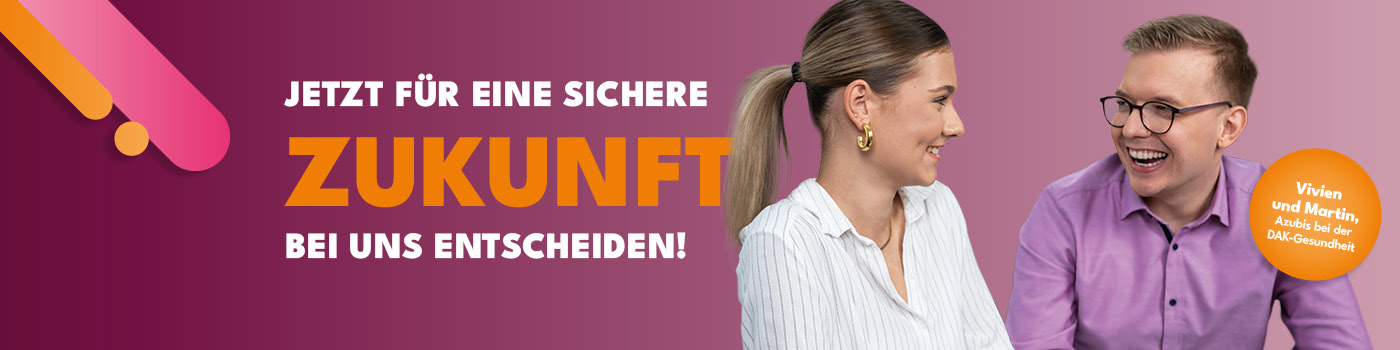 Die DAK-Gesundheit sichert sich die hohe Qualität ihrer Nachwuchskräfte durch eine anspruchsvolle Ausbildung: Zum einen bilden wir jährlich in den beiden Bereichen Sozialversicherungsfachangestellte und Kaufleute im Gesundheitswesen aus. Zum anderen bieten wir verschiedenen duale Studiengängen an, welche mit einem Bachelor of Arts in den Bereichen BWL – Gesundheitsmanagement, BWL- Digital Business Management sowie Informatik mit Schwerpunkt Anwendungsentwicklung (nur in Hamburg) abschließen.