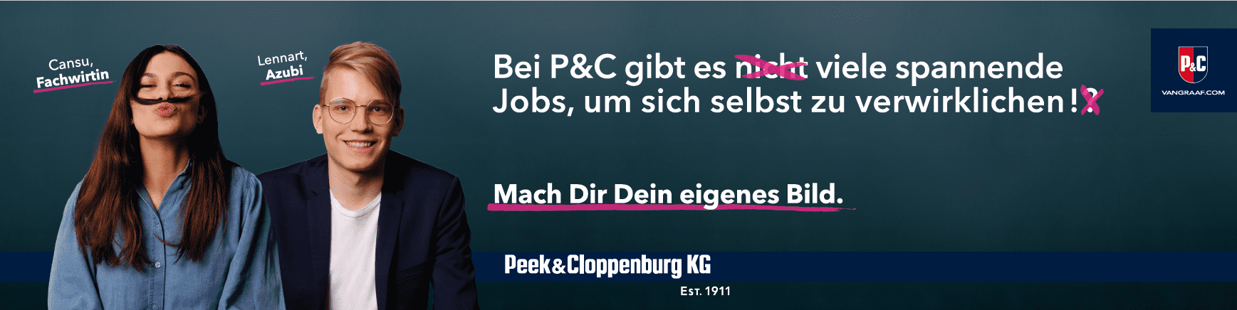 Unser Ziel: Wir bauen unsere Position als führender Marktplatz für Mode und Lifestyle weiter aus. Als Team verbindet uns die Leidenschaft für Mode und Menschen. Wir lieben, was wir tun und setzen dabei auf Eigenverantwortung, Mut und Neugier. Für welchen Weg Du Dich bei Peek&Cloppenburg* auch entscheidest – wir begleiten Dich. Individuell und persönlich.