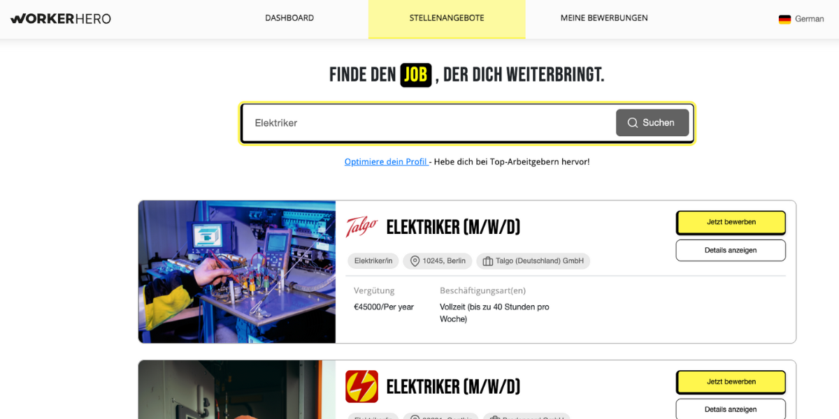 WorkerHero ist mehr als ein Jobportal – wir sind dein Karrierekickstarter. Mit nur einem Profil kannst du dich schnell und unkompliziert auf tausende Jobs bewerben, Gehälter vergleichen und von exklusiven Prämien profitieren. Wir setzen auf Fairness, Transparenz und smarte Tools für Bewerber.